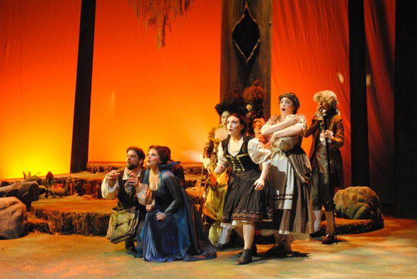 With this production, the director and I wanted to merge historical costuming with fantasy. Setting it in the Rococo period, we were able to have a lot of opportunity to play with more extreme silhouettes and detailing. Starting with the basic shapes of the period, we then used fabric and details representative of each characters origin, from the german-folk style trim work on the Baker's Wife's apron and Little Red's corset to the use of more Japanese inspired fabrics and styling for the Stepmother, to speak to the actress's heritage playing it. It was extremely important that each costume be an extension of the actor's portrayal of the character and bring another level of whimsy to intricately woven storyline.